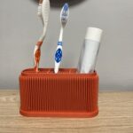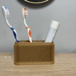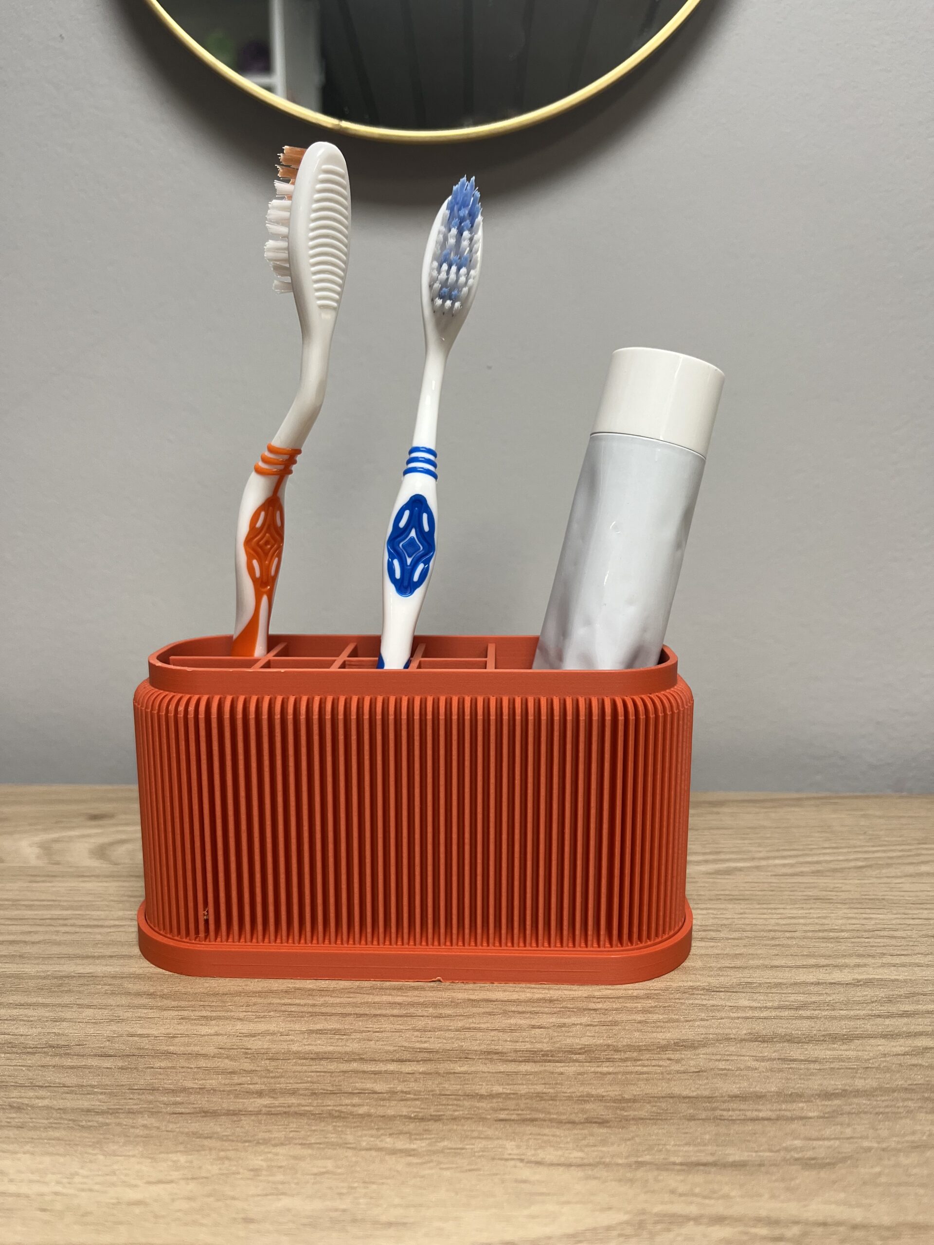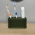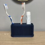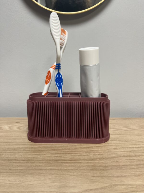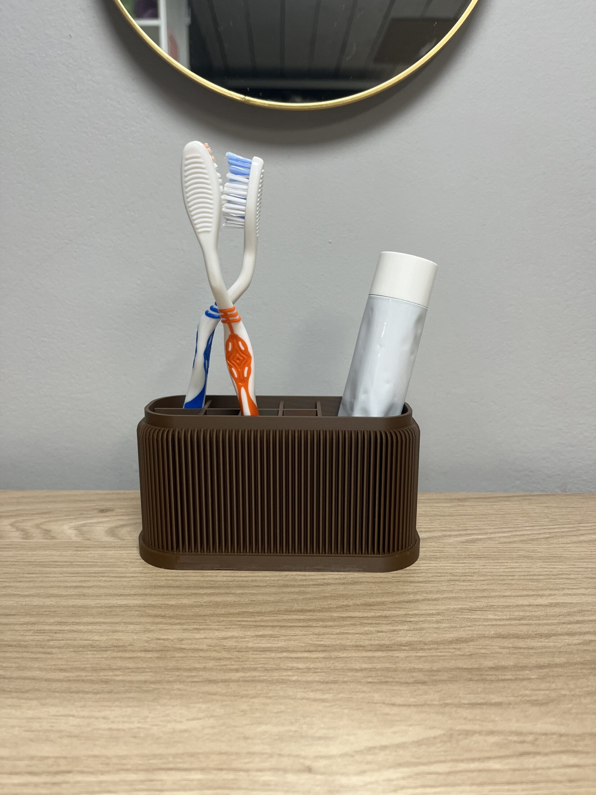 Son rangement intégré accueille jusqu’à 5 brosses à dents et 1 dentifrice, le tout dans un design strié moderne, conçu et fabriqué dans notre atelier à Angers.