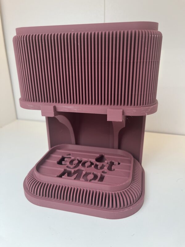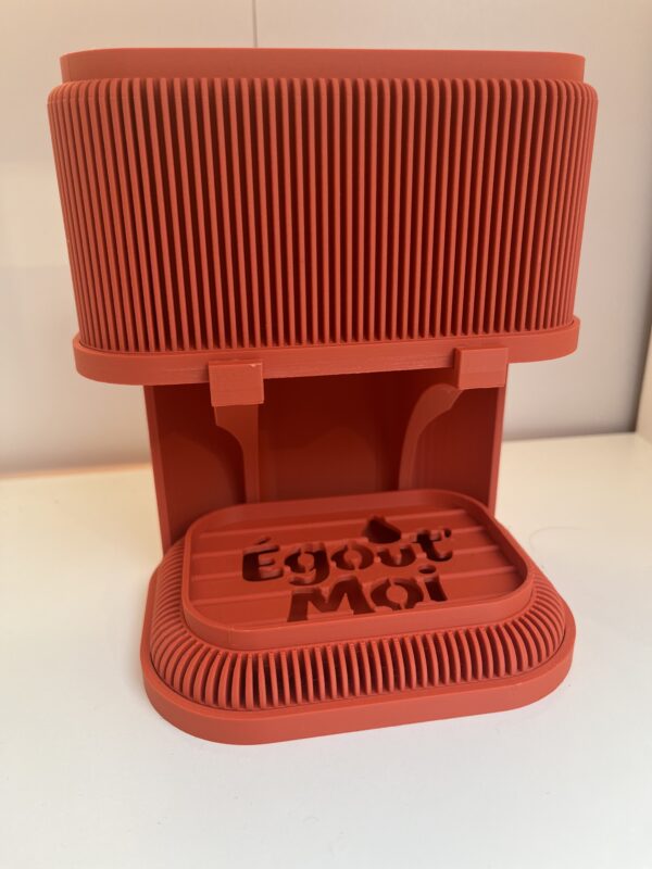 Plateau drainant avec inscription « Égout’ Moi » pour éviter l’humidité stagnante