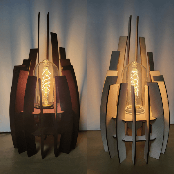 Grâce à sa fabrication en découpe laser, cette lampe unique dévoile des lignes épurées et un jeu de lumière subtil. Elle apporte une touche sophistiquée et s’intègre parfaitement à une décoration contemporaine ou minimaliste.