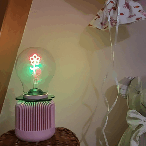 Pensée comme une veilleuse décorative, la lampe Flowers diffuse une luminosité douce et tamisée, parfaite pour accompagner vos soirées ou vos moments de détente.