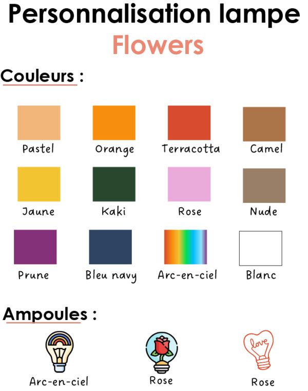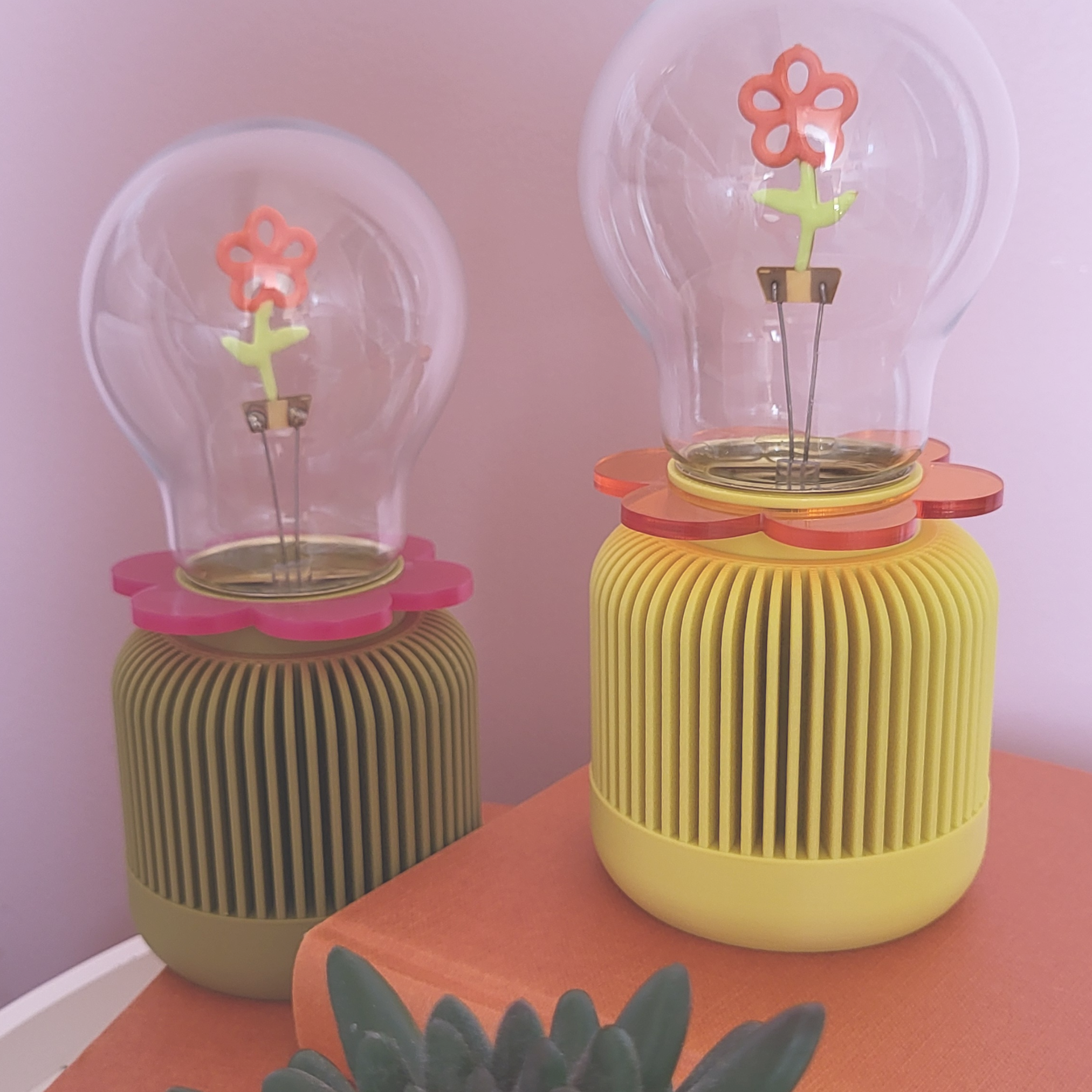 Apportez une touche florale à votre intérieur avec notre lampe Flowers 3D, idéale en veilleuse ou décoration. Personnalisez-la entièrement : embase, collerette et ampoule.
